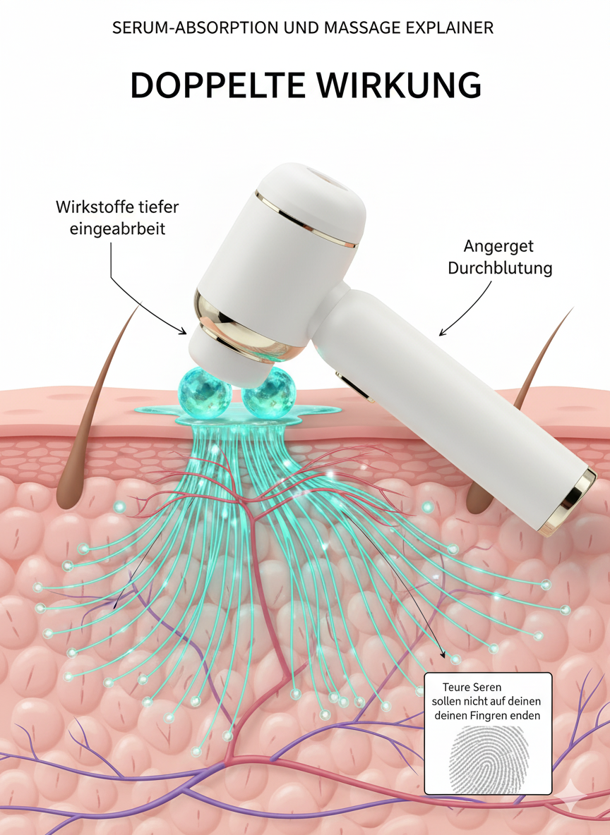 Teure Seren sollen nicht auf deinen Fingern enden. Die rotierenden Massagekugeln arbeiten Wirkstoffe tiefer in die Haut ein und regen die Durchblutung an.